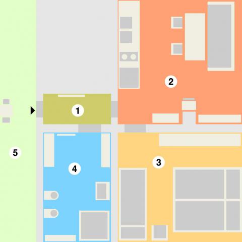 V apartmánu se nachází 3 postele v ložnici(1 postel je kratší 180cm) a rozkládací gauč v obývacím pokoji. Vhodné pro rodinu s dětmi, případně 3 dospělé osoby.