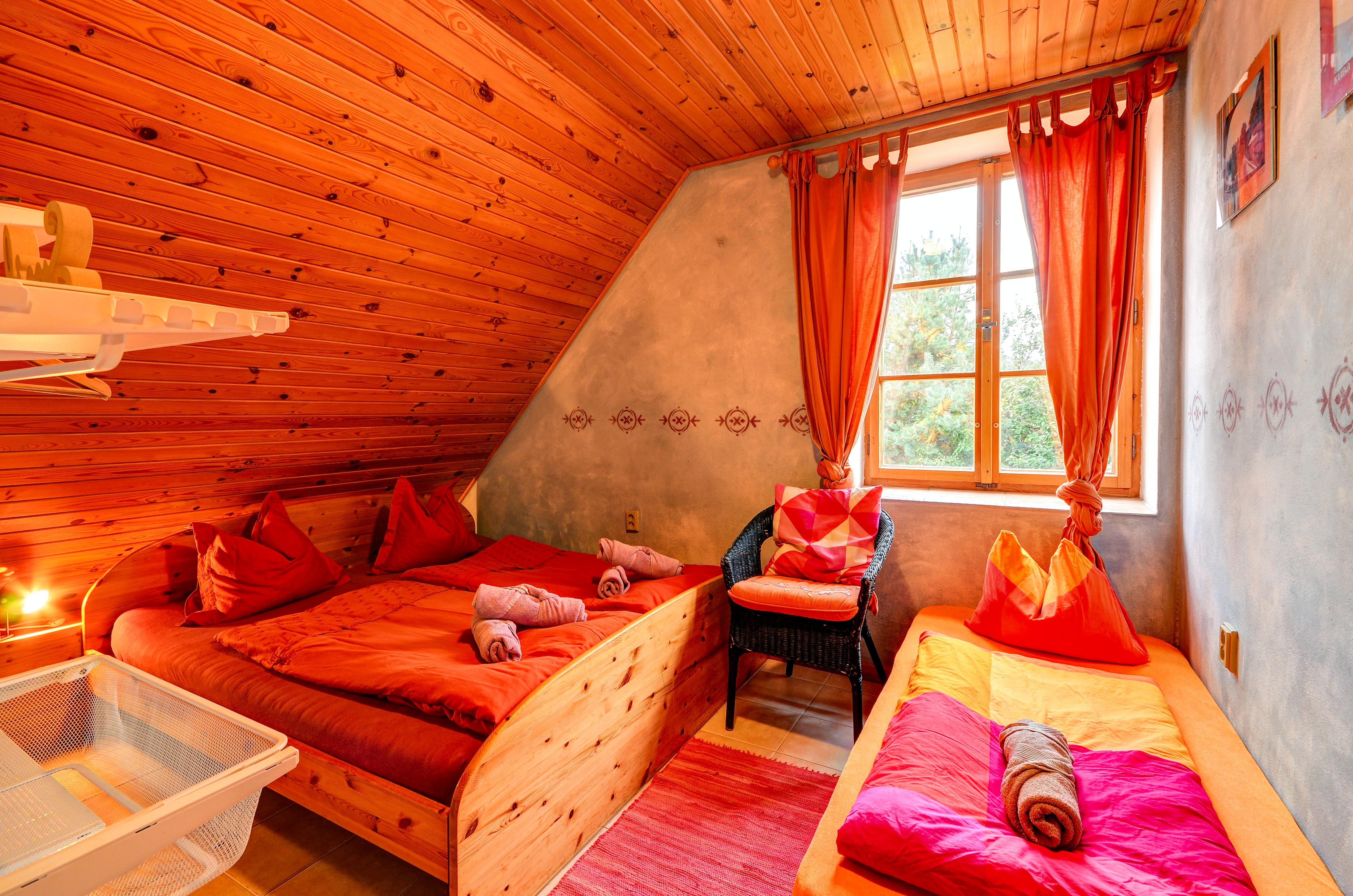 - 2 standardní postele a 1 kratší postel (180cm) v ložnici